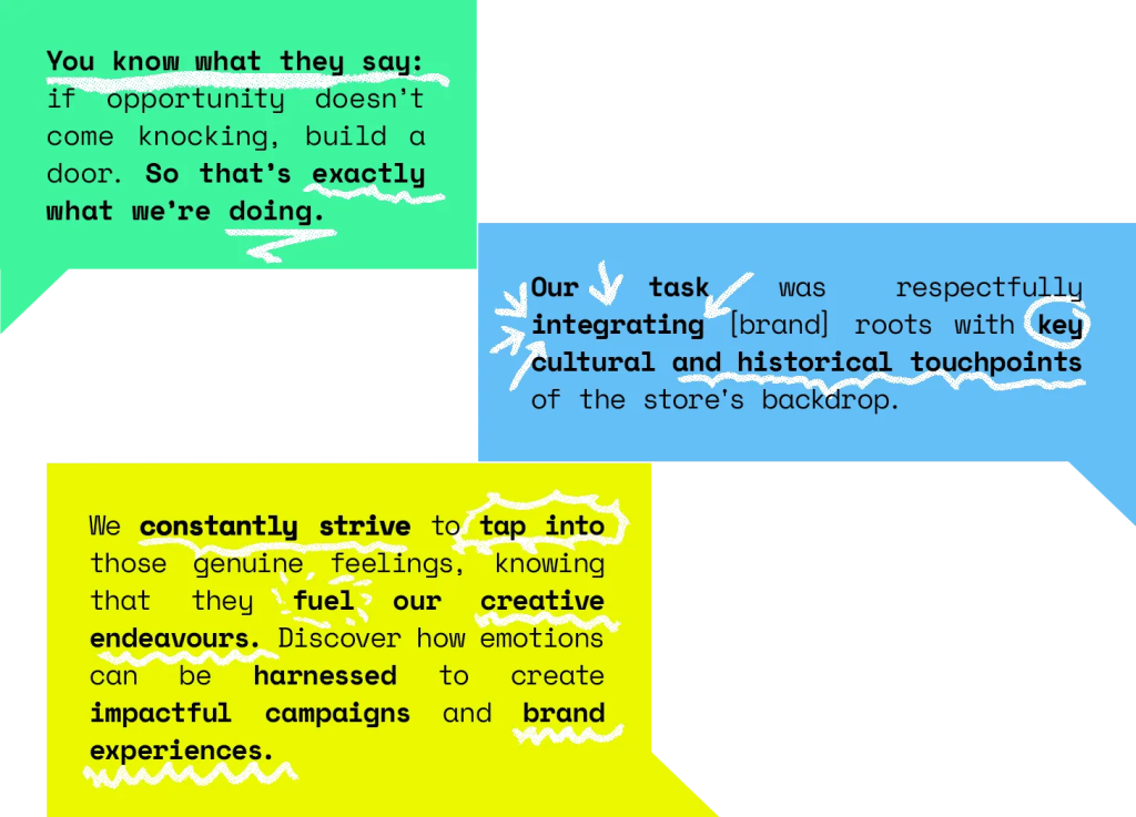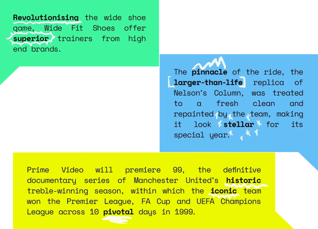 Before becoming ACM’s senior copywriter, I was a print magazine journalist. Ten-and-some-more years in a crumbling industry that I loved. And still love. It’s the most stressful fun I’ll ever have, writing and/or editing for FHM (RIP), ShortList (RIP), Hypebeast, The Guardian, MPORA (RIP), Outdoors Magic (RIP), Amuse (Vice’s adventure and travel platform, RIP), Whitelines (RIP), and more. It means I still get 100s of press releases a day, 99.9% of which go right to my trash and 99.8% of which use the same set of words and phrases, as Orwell says, for convenience rather than meaning. Allow me to present some of my favourite lazy marketing mainstays, collected from emails received in the last 24 hours: